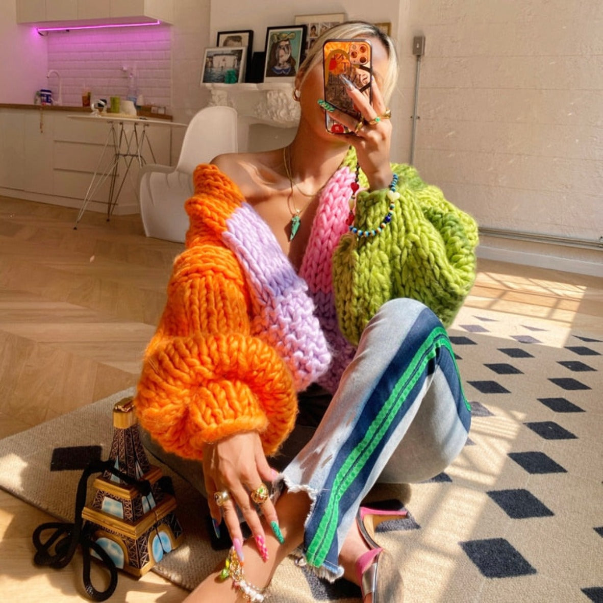 Go BIG, go BOLD, be SEEN with this strikingly colourful, handmade, chunky cardigan, which will see you through the cold mornings, chilly evenings and should you not make it back to your own tent during those long winter nights, you have your own ready made mini-blanket! No need to get lost in the crowd with Festigal!