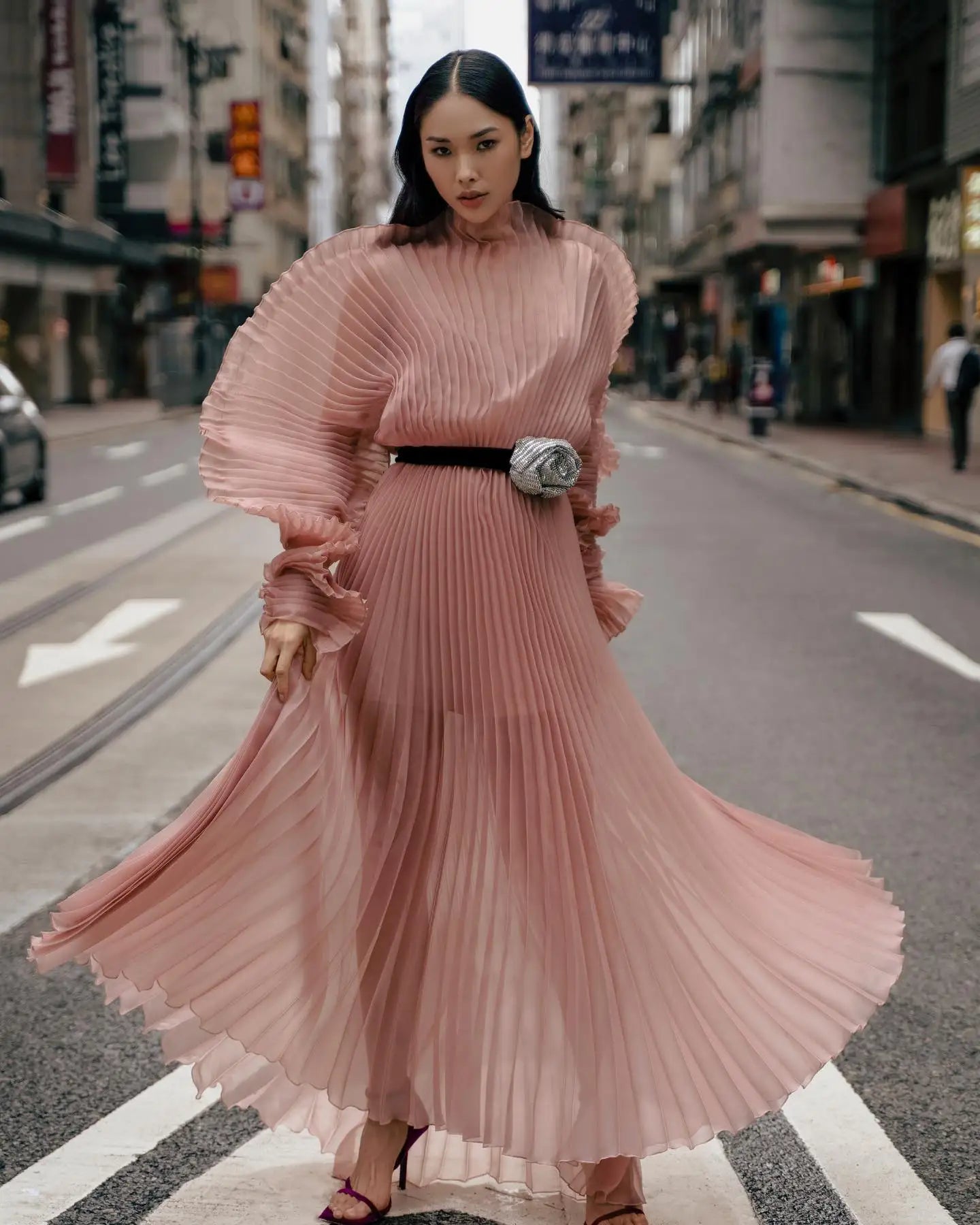 Description:Introducing our stunning Striking Powder Pink Pleated Chiffon Long Gowns with Floral Sash. Handmade by our skilled tailors, these elegant A-line maxi dresses are perfect for any formal occasion. The full sleeves add a touch of sophistication, while the delicate floral sash adds a feminine touch. Our dresses come in a range of sizes and colors, and we offer express shipping options for a safe and fast delivery. With our high-end quality and customizable options, our dresses are the perfect solution for finding your dream formal outfit. Don't miss out on this limited time offer and get yours today!