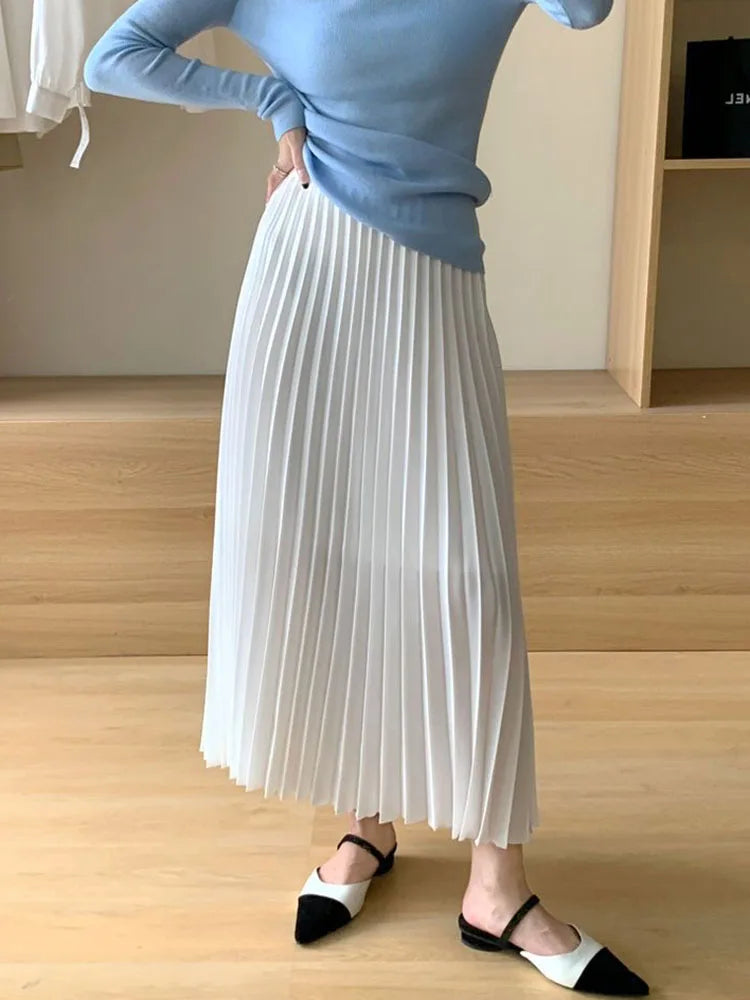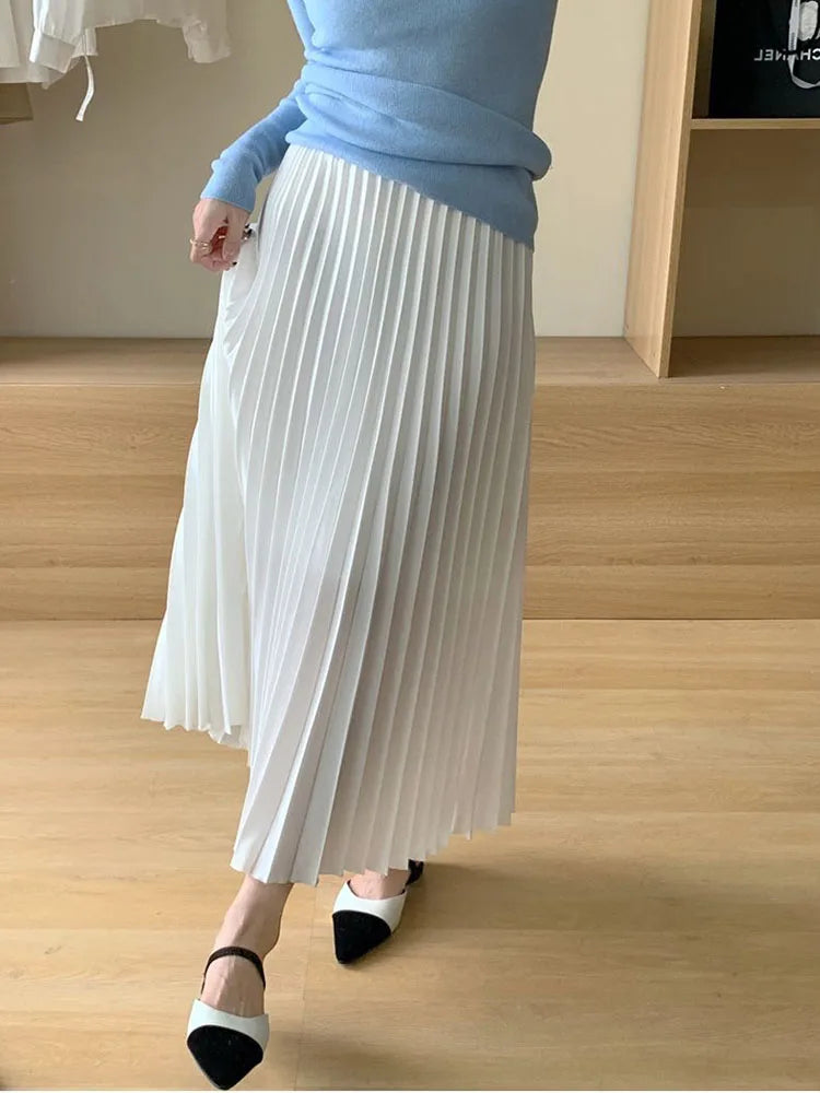 Elevate your style with the HOUZHOU Designer Women's Pleated Skirt - a luxurious high waist fashion piece perfect for spring and autumn.