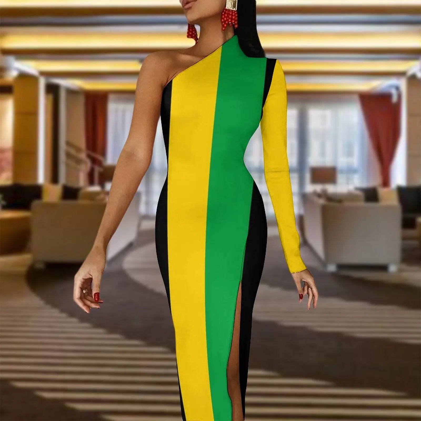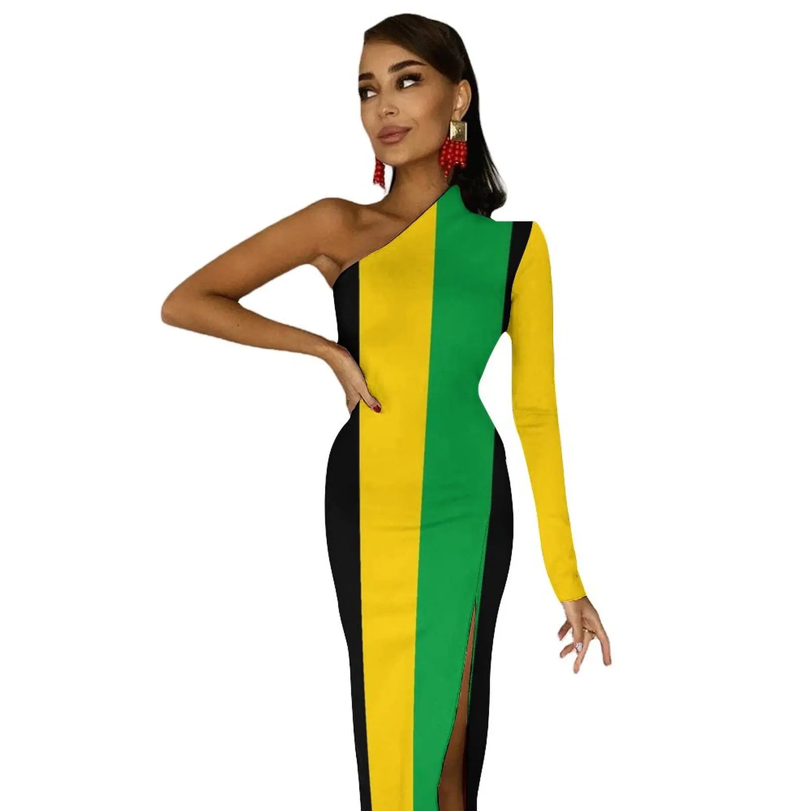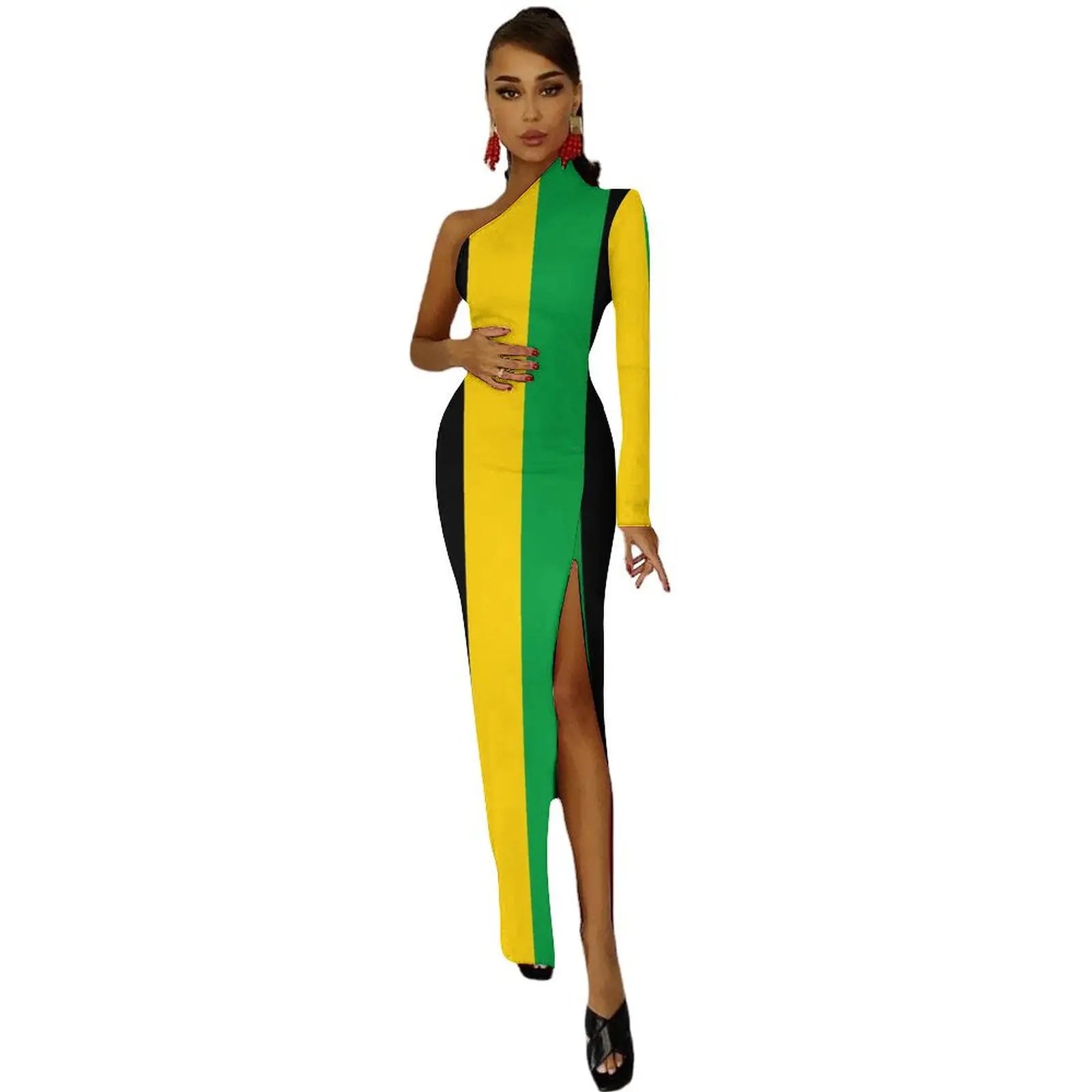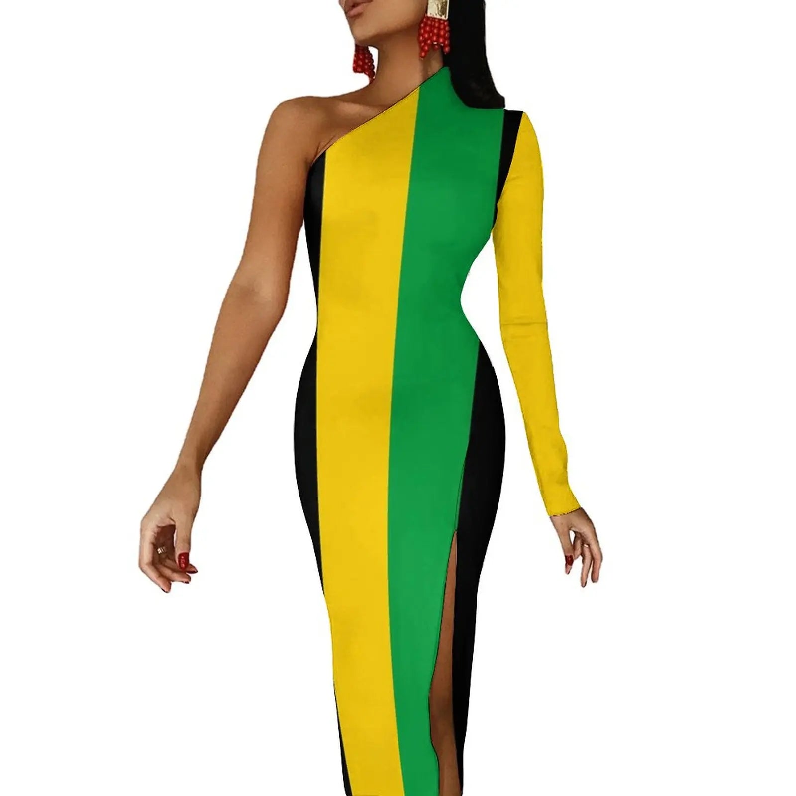 🌴 Stand out in style with our Jamaica Flag Print Maxi Dress! 🎉