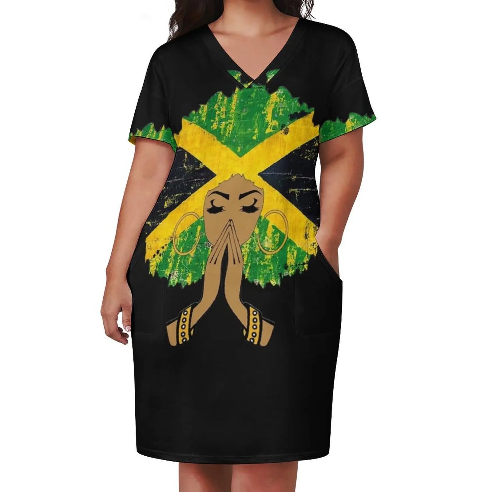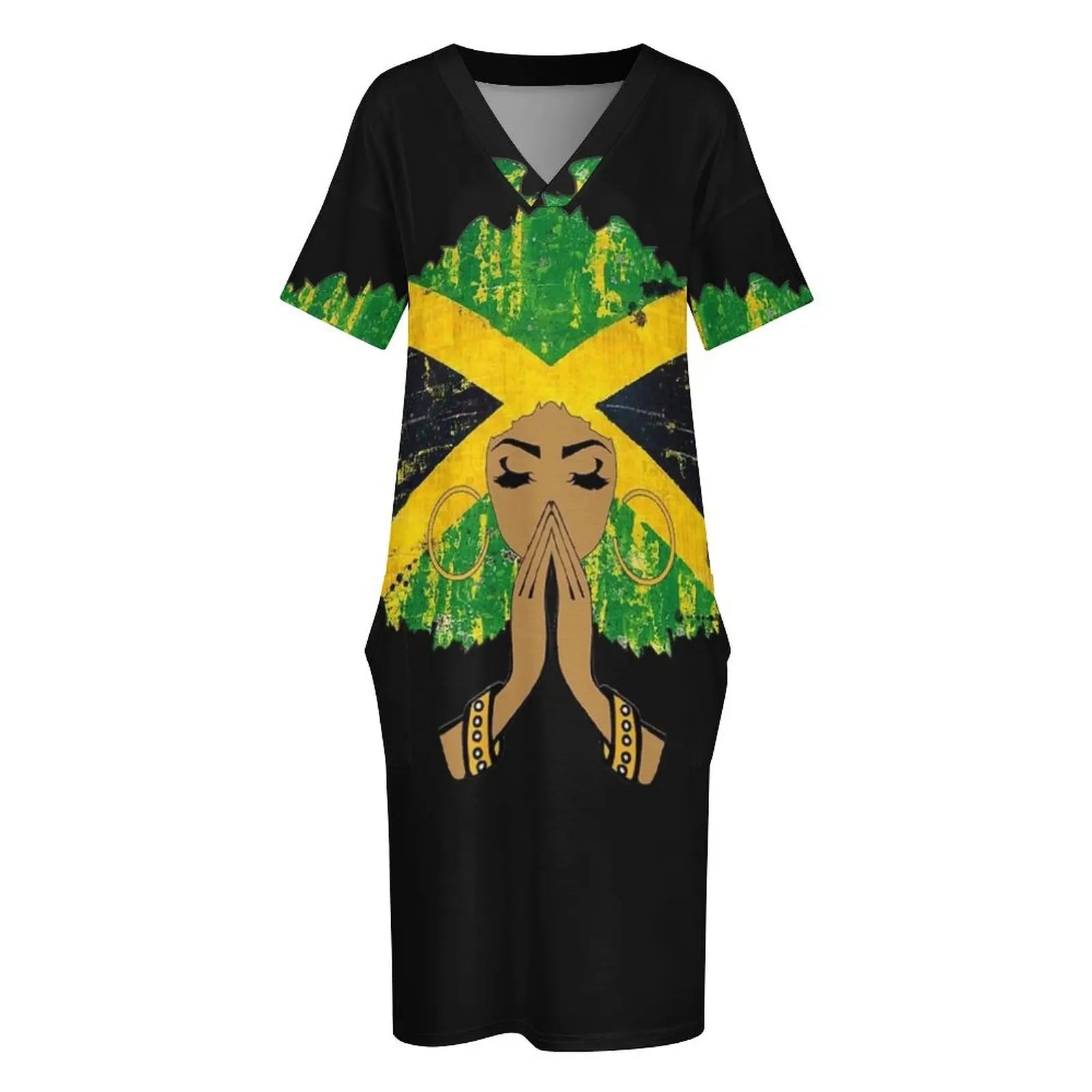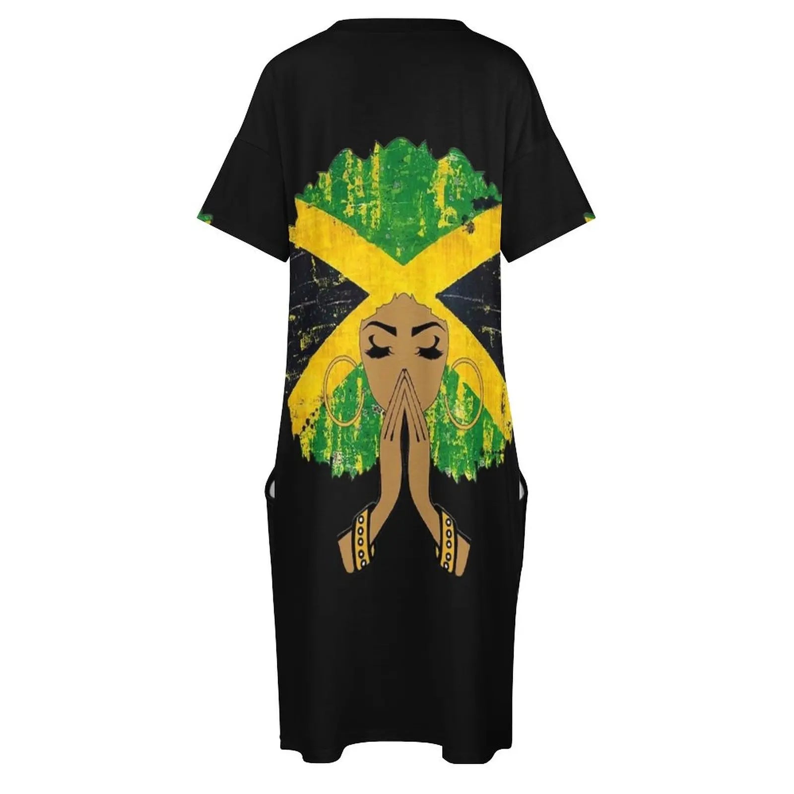 👑 Embrace your melanin queen status in this stunning Jamaican flag-themed dress! Perfect for prom, this vintage-inspired dress features a loose fit and convenient pockets for all your essentials.