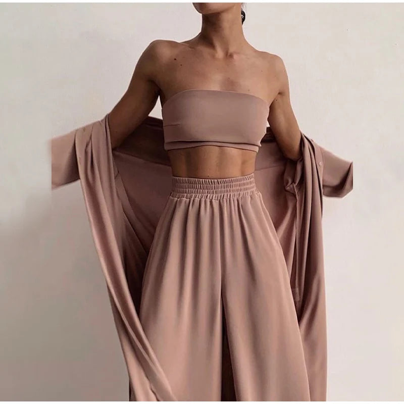 Wide Leg Pants Suits: Lady Spring Soft Three Piece Outfit