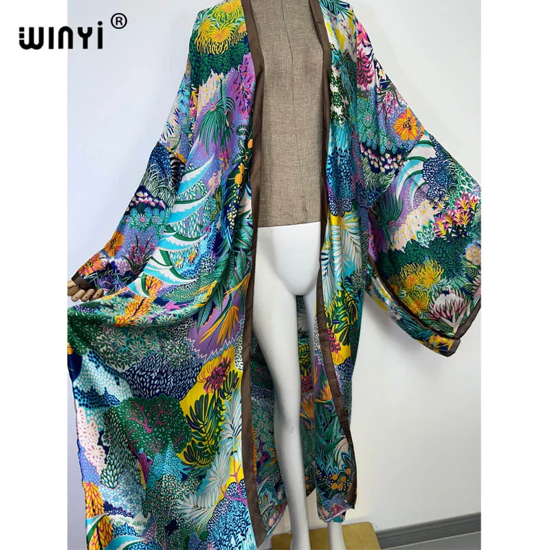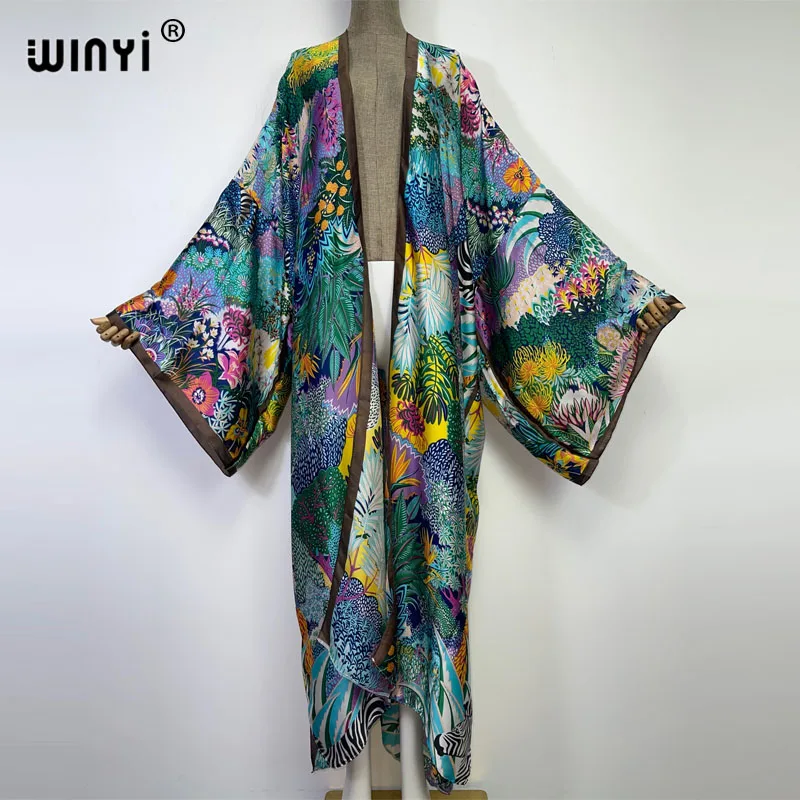 🌟 What it is - This chic and versatile cardigan features a boho maxi design with African-inspired details. The batwing sleeves and silk-like feel add a touch of luxury to your holiday wardrobe.